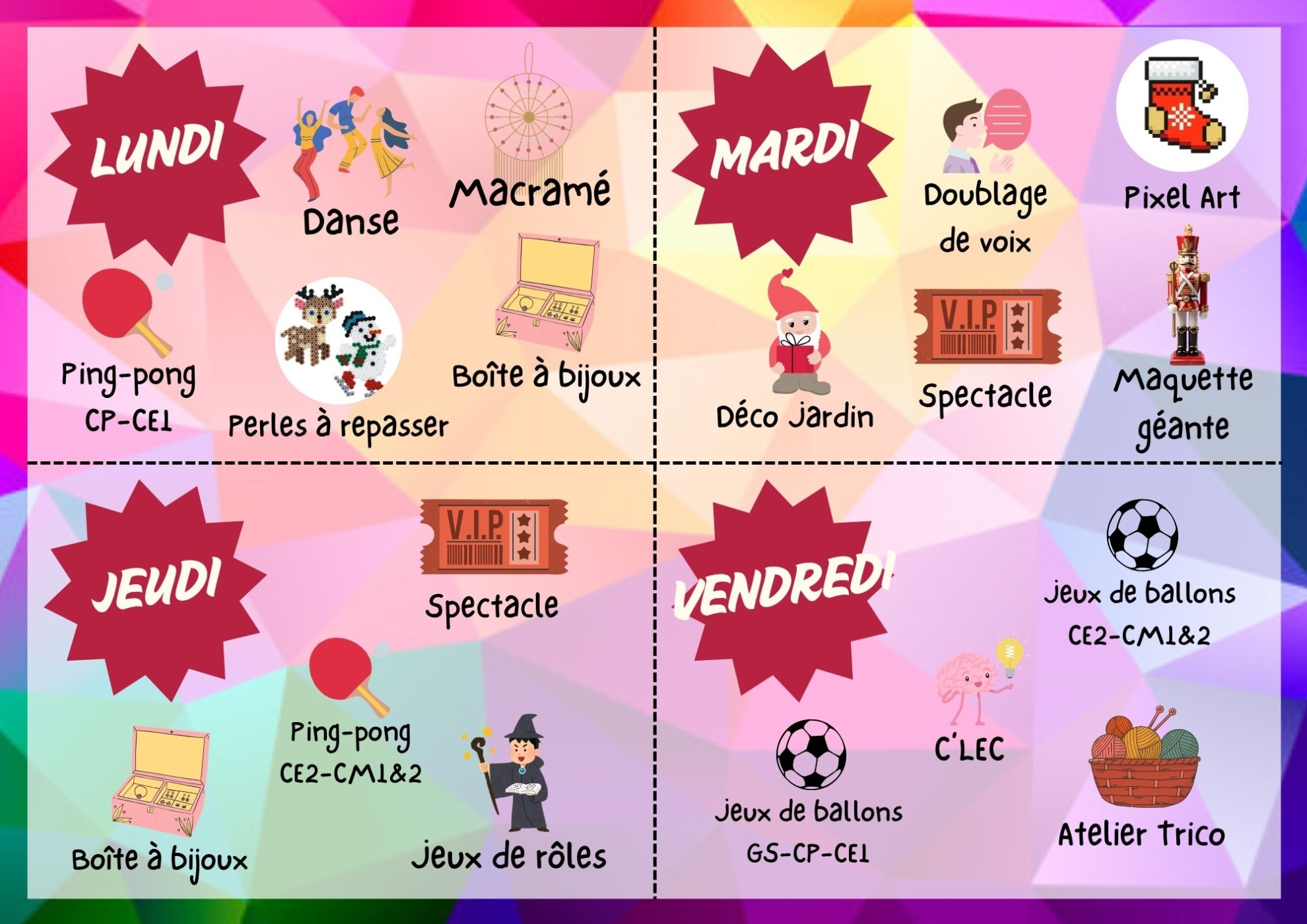 L'ALAE Elémentaire La Fontaine vous présente ses activités sur la période NOVEMBRE & DECEMBRE 2025 !