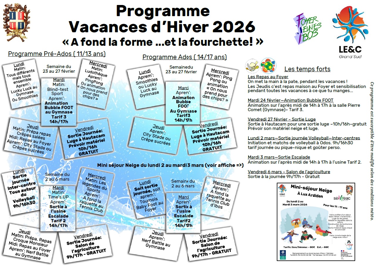 L'inscription aux activités à l'extérieur, demandant un engagement du Foyer sur les transports ou auprès des prestataires, doit être réalisé au plus tard 2 jours ouvrés avant la date de la sortie.