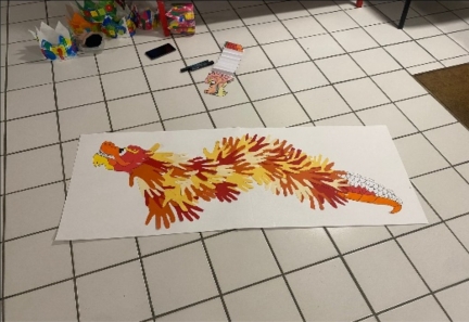 Les enfants de Kergomard se sont réunis avec ceux de Prévert pour la décoration du char de carnaval! La gourmandise asiatique était à l'honneur, mis en valeur par une fresque et un dragon fait de petites mains!