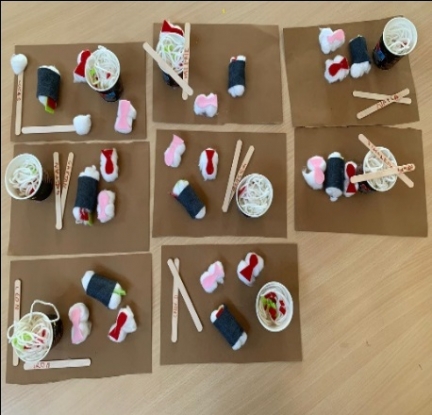 Grâce à des boutons, de la laine, du fil ou encore du tissu, les enfants ont pu attribuer d'autres fonctions à certains objets. Certains ont créé un décor, d'autre un personnage. Leur imagination est débordante!